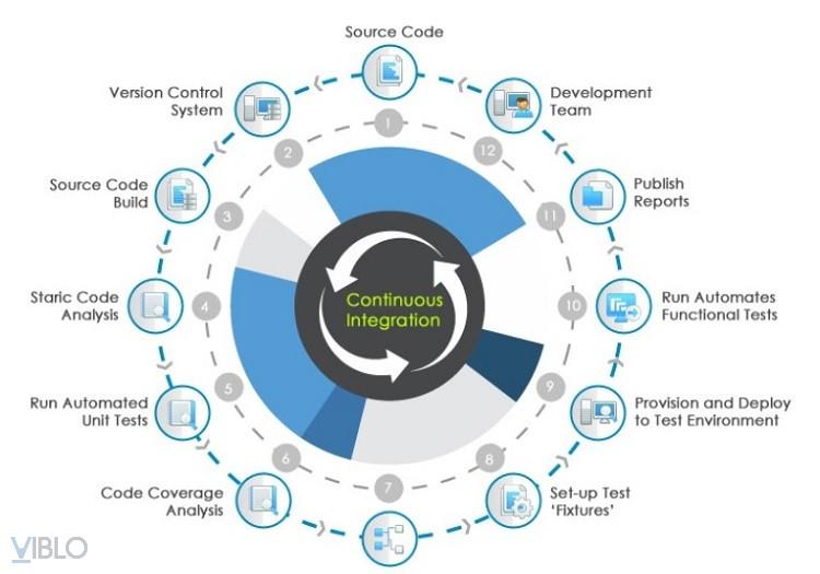 Continuous Integration hay CI là một phương pháp phát triển phần mềm. Phương pháp này đòi hỏi các thành viên trong đội cần phải tích hợp công việc với nhau một cách thường xuyên, mỗi ngày cần ít nhất một lần tích hợp. Mỗi lần tích hợp sẽ được xây dựng một cách tự động nhằm mục đích phát hiện ra những lỗi phát sinh một cách nhanh nhất có thể. Khi sử dụng CI sẽ giúp làm giảm những vấn đề về tích hợp và cho phép các developer phát triển phần mềm được nhanh hơn và đúng tiến độ hơn.Quy trình làm việc của CI có thể được diễn ra như sau:
