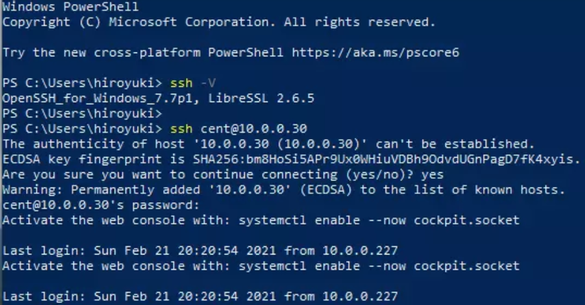 [1.1] OpenSSH đã được cài đặt theo mặc định ngay cả khi bạn đã cài đặt CentOS Stream với [Minimal] Install, vì vậy nó không cần phải cài đặt các gói mới. Bạn có thể đăng nhập bằng Xác thực mật khẩu theo mặc định. Tuy nhiên, theo mặc định, tài khoản người dùng root được phép đăng nhập, vì vậy tốt hơn là bạn nên thay đổi cài đặt.