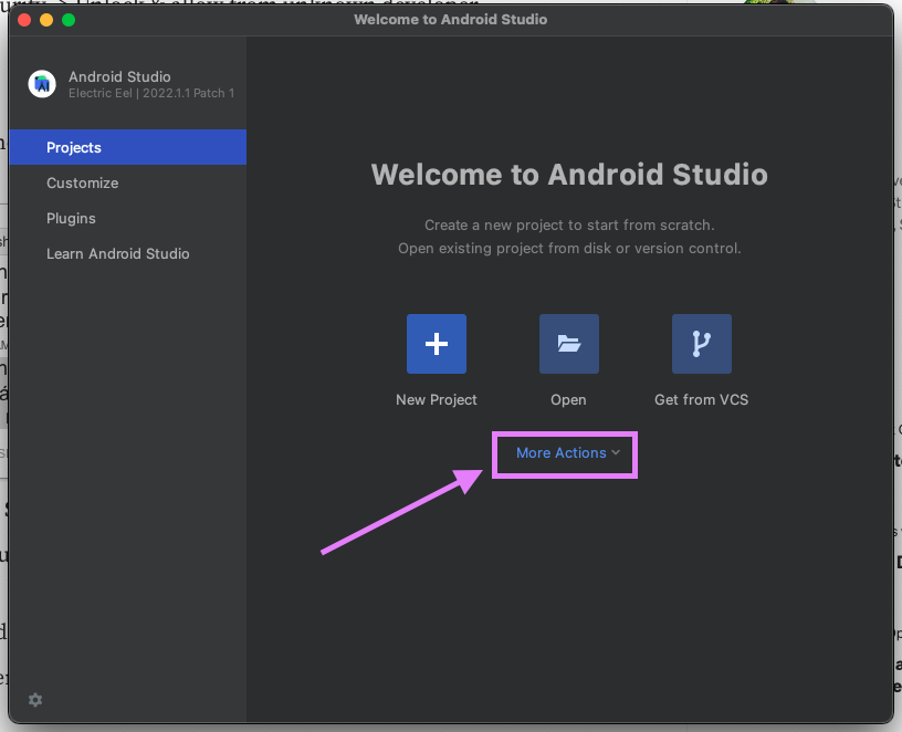 Nhấp vào More Actions, sau đó chọn SDK Manager, Tick theo trên hình và sau đó nhấp vào OK