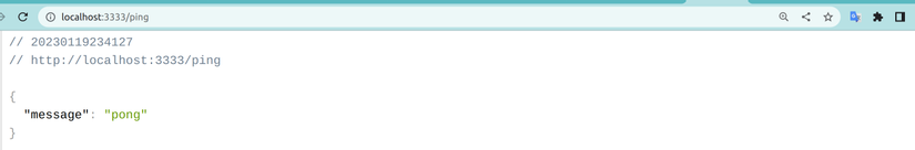 Truy cập http://localhost:3333/ping để kiểm tra. Nếu message trả về là “pong” thì đã set up thành công.