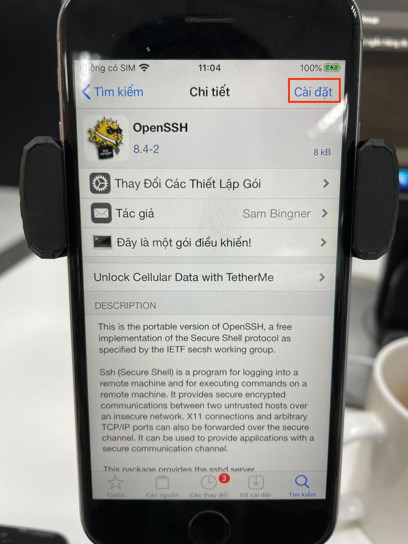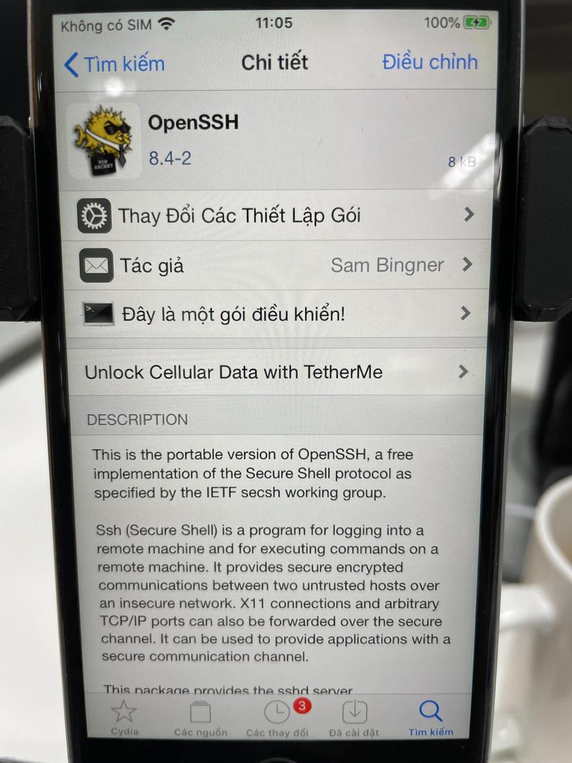 Sau khi quay lại Cydia, chúng ta sẽ thấy OpenSSH đã được cài đặt thành công.