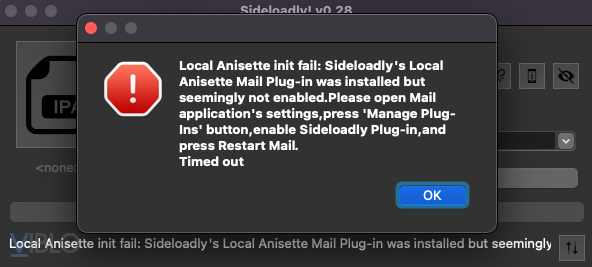 Ở đây mình sẽ sideload bằng ứng dụng Sideloadly: link tải Sideloadly. Nếu như cài trên MacOS thì có thể chúng ta sẽ nhận được thông báo yêu cầu bật plugin Sideloadly trong ứng dụng Mail để có thể cài đặt ứng dụng vào thiết bị iOS.