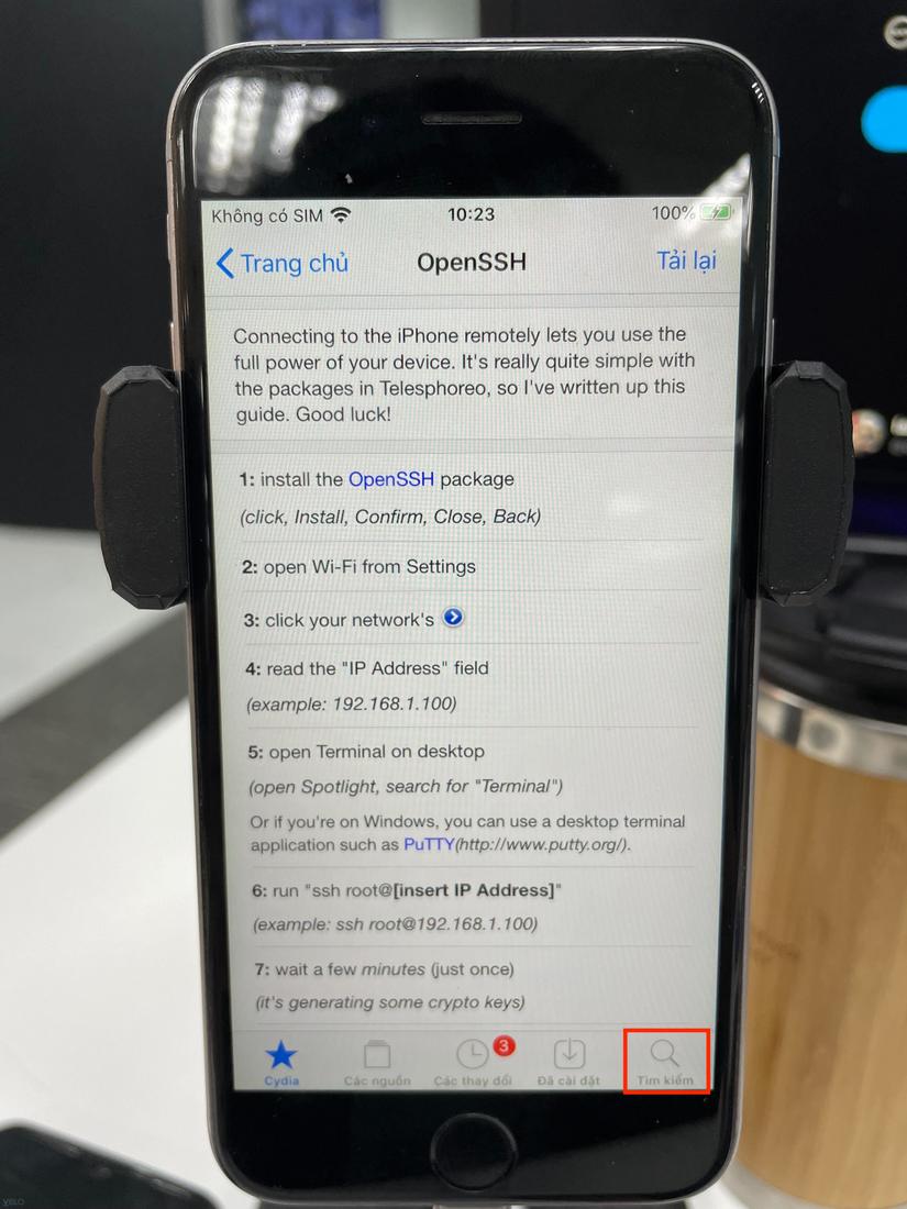 Với pentest Android app thì có công cụ ADB để hỗ trợ chúng ta kết nối với thiết bị Android, nhưng với pentest iOS app thì mình chưa thấy có công cụ giống như ADB. Chúng ta không thể chỉ cắm cáp USB truyền dữ liệu vào máy tính, sau đó khởi động công cụ kết nối là được. Với iOS chúng ta sẽ phải cài OpenSSH từ kho ứng dụng Cydia, sau đó SSH vào thiết bị iphone.