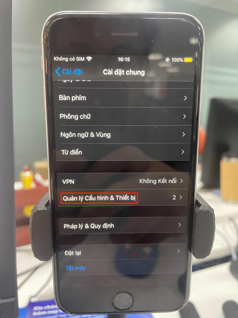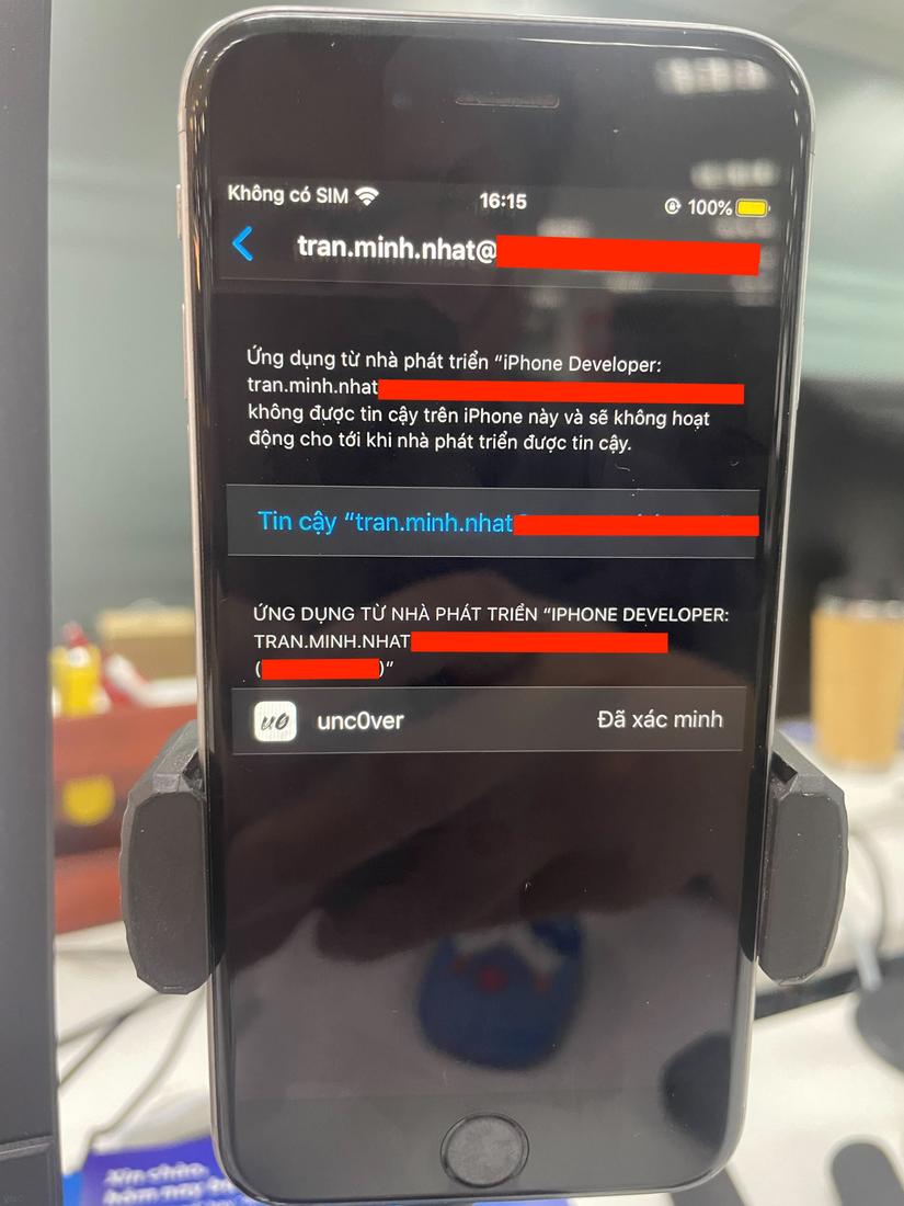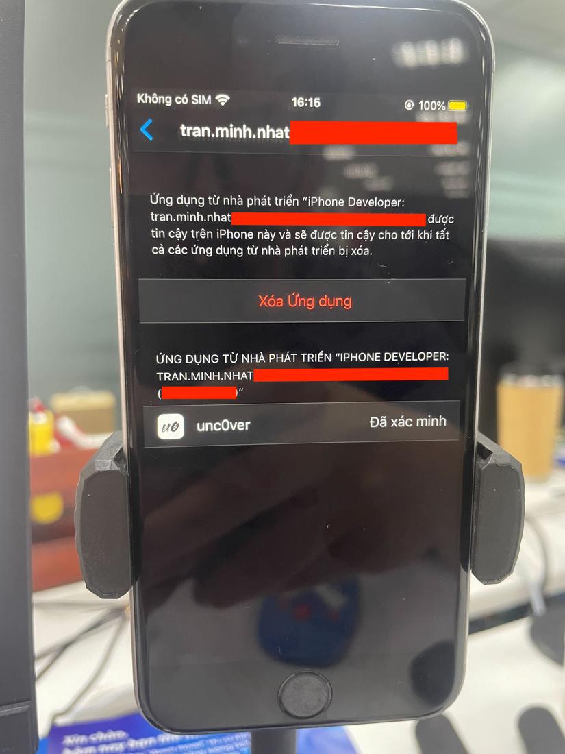 Sau khi Sideload ứng dụng thành công, trong thiết bị của chúng ta sẽ có thêm ứng dụng unc0ver. Vì ứng dụng không được cài từ app store nên sẽ chưa được chạy ngay. Chúng ta cần vào cài đặt để cho phép chạy ứng dụng: Cài đặt > Cài đặt chung > Quản lý Cấu hình & Thiết bị.