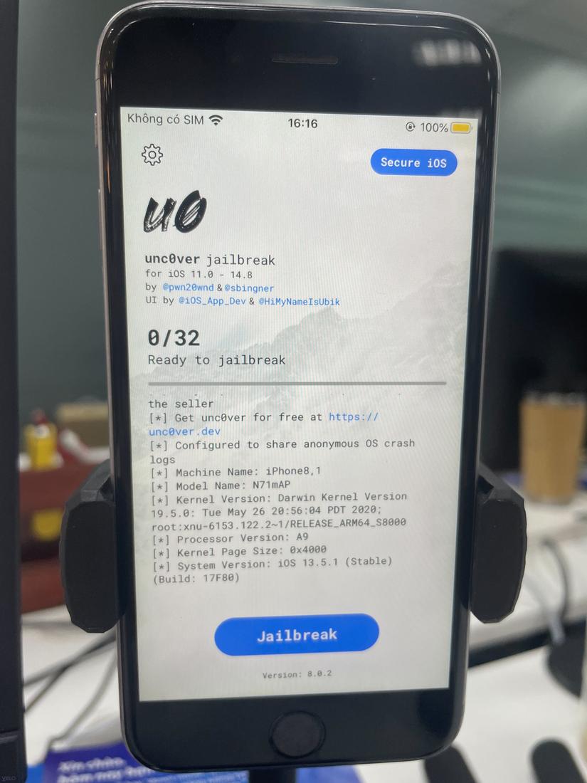 - Semi-untethered jailbreak bằng unc0ver.