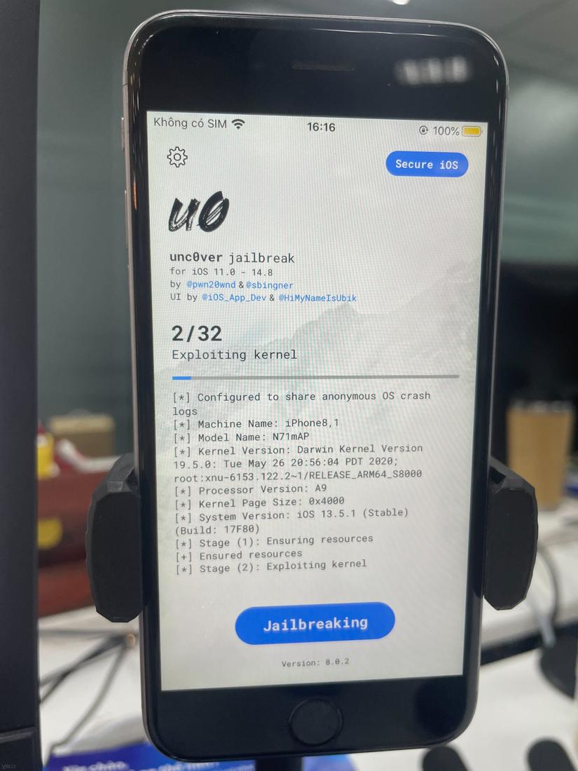 - Bước 4: chờ quá trình jailbreak hoàn thành