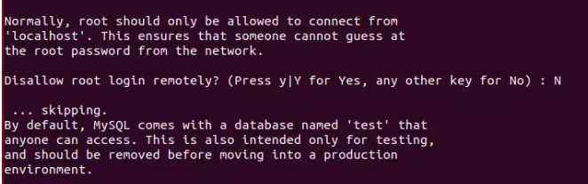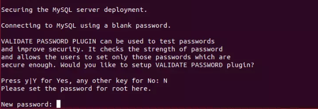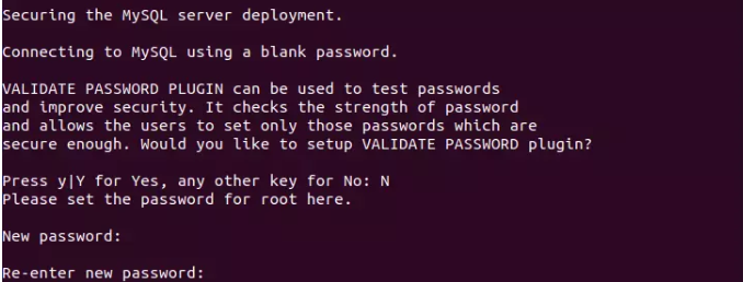 - Sau khi chọn N, sẽ yêu cầu bạn thiết lập mật khẩu cho MySQL. Ở đây để dễ nhớ mình sẽ đặt là: 123456