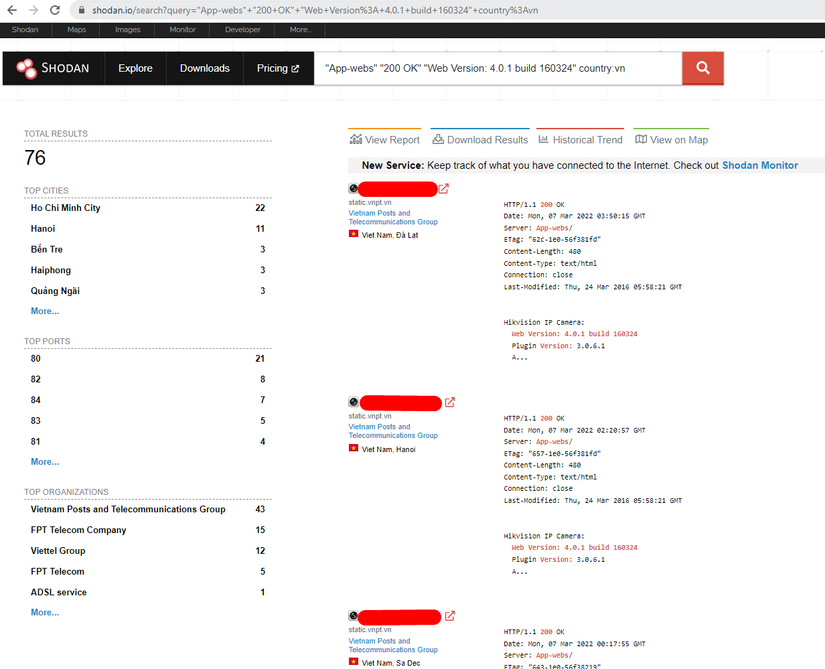 Để hình dung được mức độ nguy hiểm của lỗ hổng dù đây là một lỗ hổng từ lâu, mình sẽ dử dụng công cụ shodan để tìm kiếm các thiết bị đang có nguy cơ bị tấn công. Để hiểu hơn về công cụ shodan các bạn theo dõi bài viết của mình tại đây: https://viblo.asia/p/shodan-cong-cu-tim-kiem-cho-kiem-thu-bao-mat-924lJJD0lPMỞ Việt Nam: