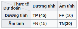 - True negative (TN): Số các ca dự đoán âm tính đúng hay âm tính thật.