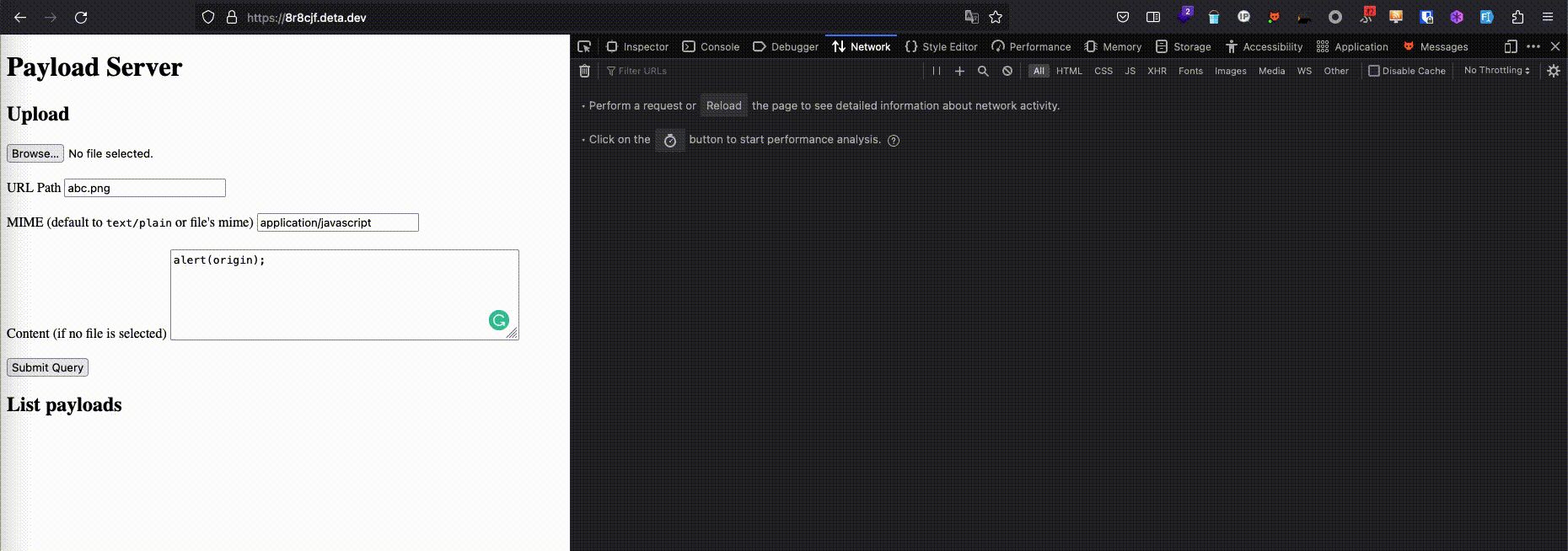 alert(origin)và mime type lại là javascript (chứ không phải file ảnh như đuôi PNG). - Cho người dùng điền trực tiếp nội dung file.