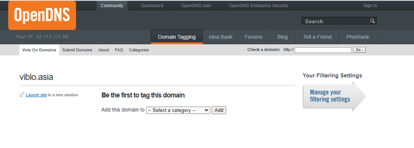 Tuy nhiên trong trường hợp domain của chúng ta bị liệt vào danh sách “độc hại” chúng ta cũng có thể yêu cầu đánh lại category tại https://domain.opendns.com/