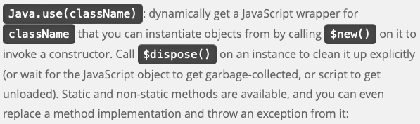 Khác với Java.choose() chỉ lấy bánh, API Java.use() xử lý triệt để bằng cách kiểm soát cái khuôn. Lúc này muốn tạo ra bánh mới, huỷ bánh vừa tạo đi, thay đổi một chút trong khuôn bánh thì đều được. Hiểu đơn giản thì Java.use() cho phép chúng ta thay đổi logic của hàm ngay từ lúc nó được tạo ra bằng cú pháp new. Vì thế thường thì chúng ta sẽ sử dụng API này nhiều hơn.