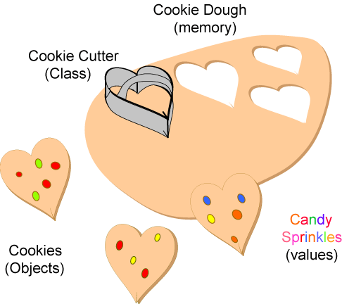 Khi học về lập trình hướng đối tượng (OOP), có thể chúng ta đã được nghe về ví dụ khuôn làm bánh – một ví dụ dễ hiểu để hình dung về mối quan hệ và điểm khác nhau giữa Class và Object. Class là một cái khuôn, với cái khuôn này chúng ta có thể cắt bột thành các hình dạng tương tự nhau. Những mảnh bột này sau đó có thể được chế biến thành các loại bánh khác nhau, có cái rắc thêm bột chocolate, có cái thêm nho khô, có cái lại được phủ bơ trước khi nướng. Những chiếc bánh này đều là các Object, tuy chúng khác nhau nhưng giữa chúng chắc chắn vẫn có điểm chung được hình thành vì tạo ra từ cùng một khuôn.