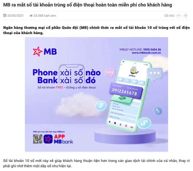 - MB bank: “phone xài số nào – bank xài số đó”.