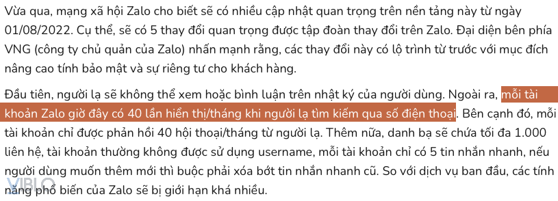 Nếu người đó có dùng Zalo thì chỉ cần nhập số điện thoại vào ô tìm kiếm là chúng ta sẽ tìm được tài khoản Zalo của người này. Mà ở VN mình thấy cũng nhiều công ty, hội nhóm liên lạc qua Zalo, đến cả tổ dân phố chỗ mình ở cũng chơi Zalo. Nên khả năng tìm được tài khoản Zalo từ số điện thoại không hề thấp. Hiện nay thì Zalo đã ra chính sách mới để hạn chế khả năng chúng ta “bị” tìm thấy trên Zalo.