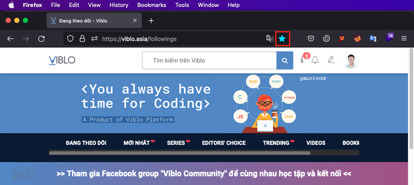 Hạn chế luôn việc bấm vào các đường link trong tin nhắn nhé. Trong trường hợp lỡ hoặc phải bấm vào, thì các trang web đã được bookmark đều sẽ có dấu hiệu cho chúng ta nhận biết. VD như trình duyệt Firefox xuất hiện dấu sao phát sáng lên như này.