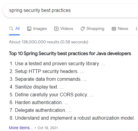 Tìm kiếm best practices cho công nghệ Spring security của Java: