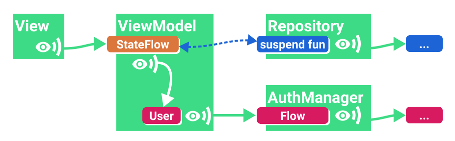 StateFlow sẽ nhận được các update bất cứ khi nào user thay đổi hoặc user data trong repository thay đổi.