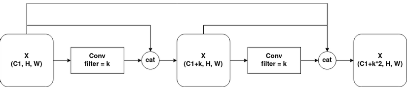 Còn DenseBlock trong DenseNet sẽ được biểu diễn như sau: