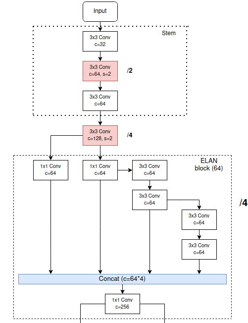 Trước khi tiến vào ELAN Block đầu tiên trong backbone, ảnh đầu vào sẽ đi qua Stem Block (Hình 3).