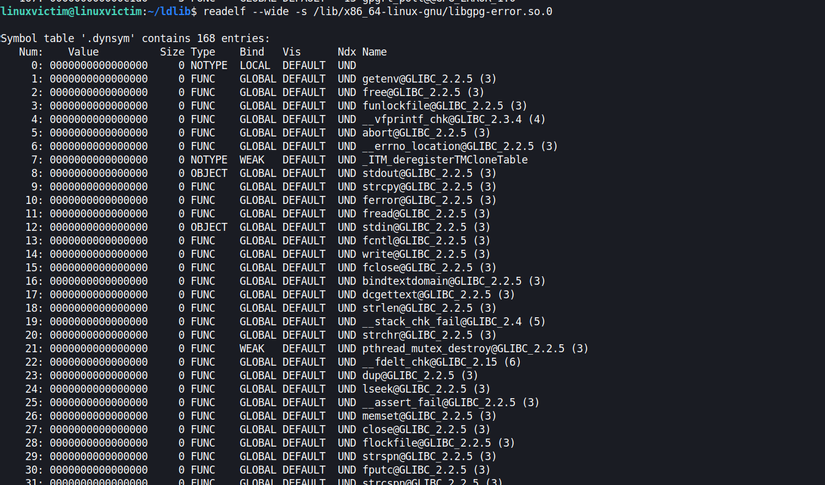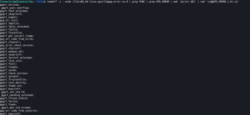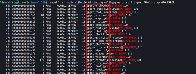 readelf -s --wide /lib/x86_64-linux-gnu/libgpg-error.so.0 |grep FUNC |grep GPG_ERROR
