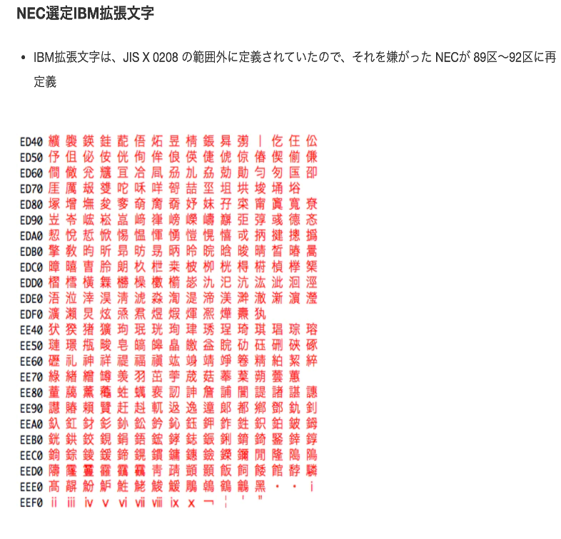 | IBM lựa chọn NEC ký tự mở rộng | 0xED40~0xEEFC |