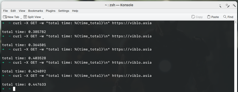 curl -X GET -w "total time: %{time_total}n" https://viblo.asia