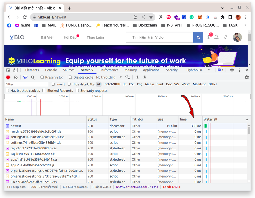 Một cách trực quan hơn là bạn nhìn vào response time trên phần network của chrome inspector.