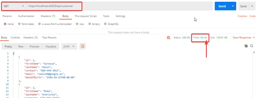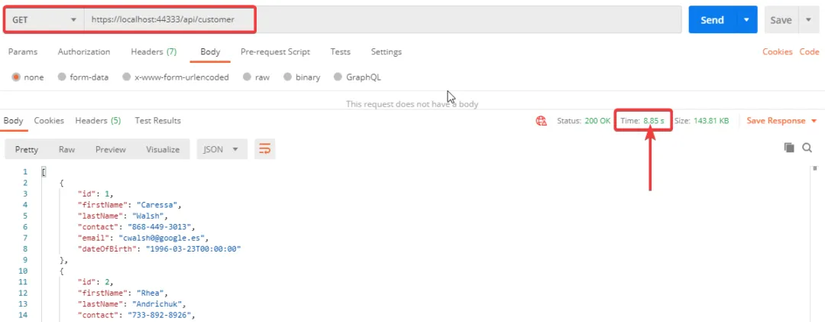 Hãy thử lấy tất cả Customer xem hết bao nhiêu lâu nhé: