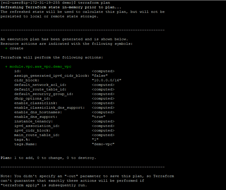 • CMD plan là một dry-run command, khi thực thi terraform sẽ cấp cho mình một execution plan, có highlight các thay đổi để mình có thể xác định được các thay đổi trong configuration.