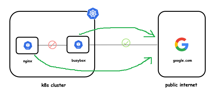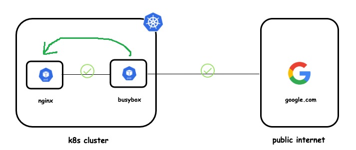 Vào pod busybox thực hiện wget google.com KQ: [return 200]. Với trường hợp ta chỉ định pod nhất định > thì có thể sửa podSelector: