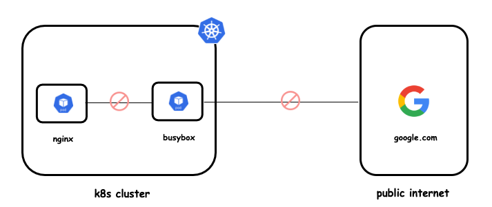 - Allow đến mức pod gọi pod, giới hạn pod gọi internet. Tránh trường hợp 1 pod bị chiếm quyền tấn công loạn xạ toàn bộ hệ thống k8s.