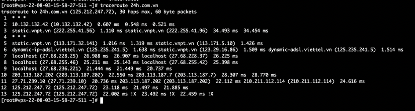 Để khắc phục lỗi này các bạn có thể dùng lệnh traceroute để xem chi tiết các điểm gói tin đi qua