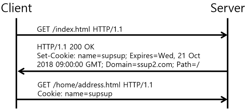 Trình duyệt web lưu trữ thông tin này và gửi nó trở lại máy chủ thông qua tiêu đề Cookie HTTP cho yêu cầu tiếp theo như sau: