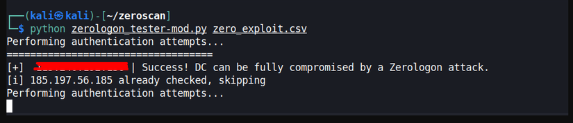 $ python convert-nmap-zerologon.py /home/kali/zero_logon.xml