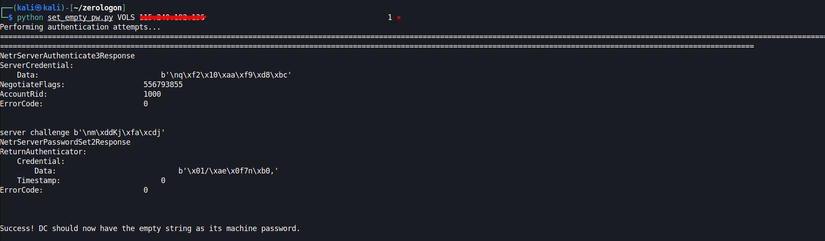 Giai đoạn thứ 3 của việc khai thác lỗ hổng ZeroLogon là thay đổi mật khẩu cho tài khoản của DC bằng tính năng NetrServerPasswordSet trong MS-NRPC. Hacker có thể xóa mật khẩu hiện tại (đặt mật khẩu rỗng) hoặc thay bằng mật khẩu ưa thích.