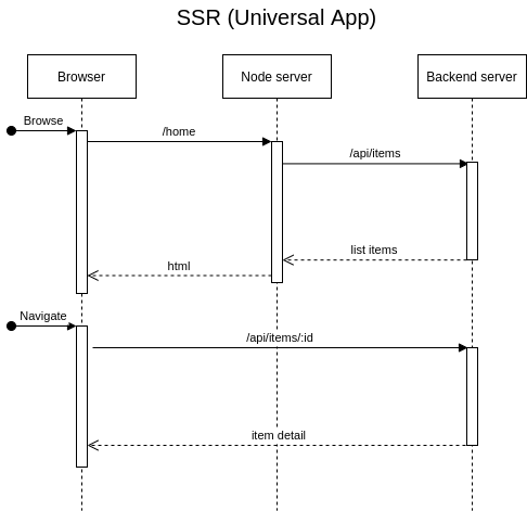 - SSR truyền thống sẽ load lại trang HTML mới từ server mỗi khi user chuyển trang, còn SSR với NuxtJS hay NextJS thì thường được gọi là Universal app, tức là app sẽ kết hợp SSR cho rendering lần đầu và CSR cho việc user chuyển trang trên app.