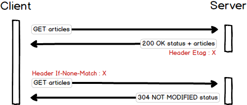 Nôm na thì server sẽ trả kèm 1 cái etag chính là signature sinh ra từ response của request đó trong lần gọi đầu tiên. Browser sẽ lưu lại chiếc tag này và lần sau request sẽ truyền đúng cái etag lần trước lên. Nếu server sinh response mà thấy signature giống hệt chiếc etag được browser truyền lên thì sẽ trả về http code 304 Not Modified cùng response trống để browser tự hiểu mà lấy response cũ ra xài.