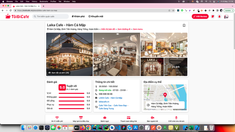 Tiện thể Toidicafe.vn là sản phẩm đồ án tốt nghiệm của mình, công dụng của nó là giúp mọi người tìm kiếm được quán cafe dễ dàng hơn theo vị trí, nhu cầu mục đích, các bác vào trải nghiệm để ủng hộ mình nhé.