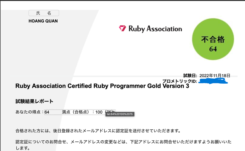 1 điều nữa là mình cũng khá yên tâm vì khi thi nhìn thấy sự khác biệt đã biết trước kết quả này. Về nhà tra thử thì có cụ này đi thi Gold 3 và điểm thì cũng suýt soát trượt(dù đang cầm Gold 2.1): https://zenn.dev/universato/articles/20221011-z-rubygold3