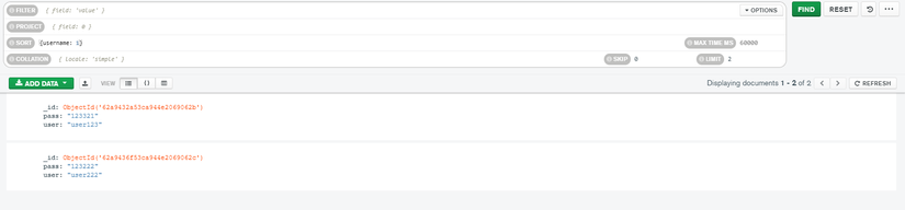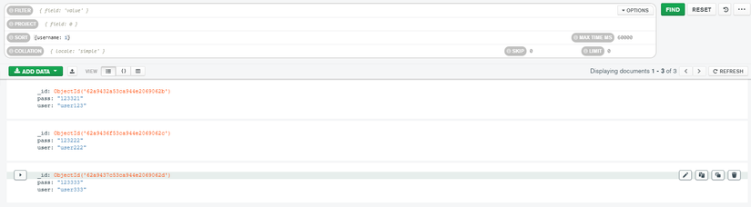 Syntax query cần viết đúng với chuẩn object của mongo đặt ra, các cô bác có thể tìm hiểu thêm ở đây: https://www.mongodb.com/docs/compass/current/query/filter/ - Chưa hết: ngoài việc filter data bằng find, compass còn cho phép sort, skip, limit để sắp xếp cũng như phân trang kết quả trả về