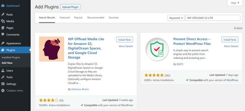 Để kết nối với S3, ở WordPress ta cài thêm plugin WP Offload Media Lite for Amazon S3.