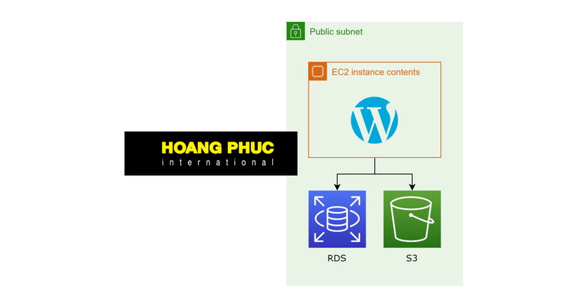 Hệ thống bao gồm một con máy ảo chạy WordPress, một con AWS RDS Database MySQL và S3 bucket. Hệ thống này của ta có thể chịu tải được khoảng vài trăm người dùng, và ở các bài sau ta sẽ xem làm sao ta có thể mở rộng hệ thống này ra để phục vụ được hàng triệu người dùng.